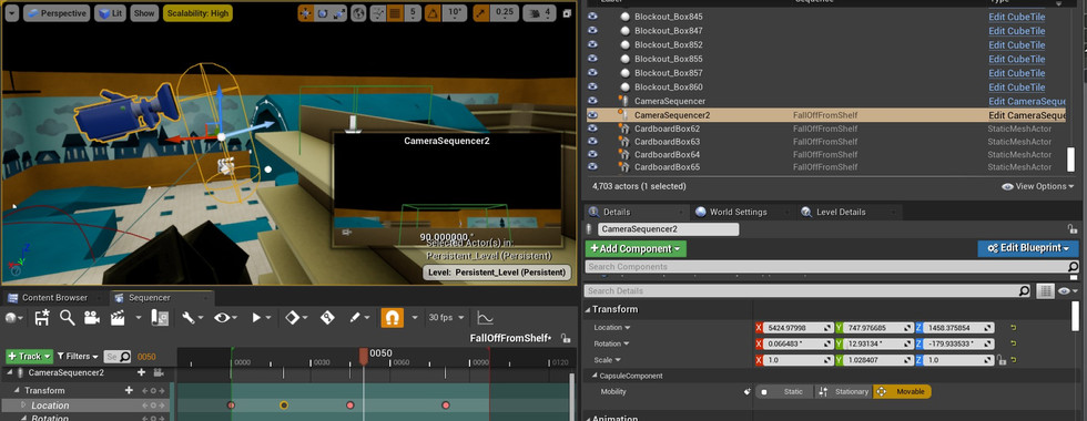 Level Sequence - Player falls from boxes tipping over after picking up a key (trigger box for now)