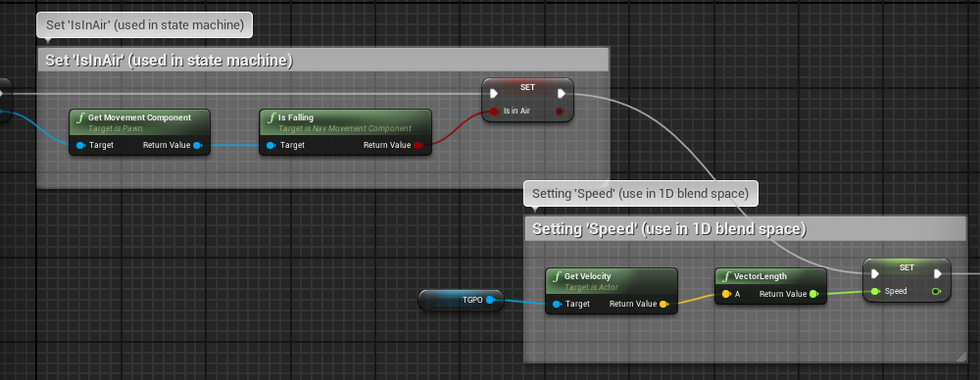 Here are two examples of using a conduit that has helped separating two animations. Technically the idle to walking jump animation is three animations but the only way I could make the jump work was by using the transition rule of a Boolean variable and using a smooth transition node called time remaining (ratio) (name of animation) with a less than node with a value of 0.1.