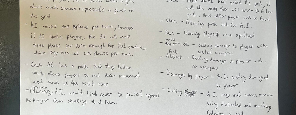 As a Game Designer in the project, I was to generate ideas and develop game concepts. I first had to look online and research the type of game I was trying to make and I came across Hitman GO and Zombie GO which were two games that inspired me to make a top-down puzzle game but I wanted to focus more on zombie survival so there might be some puzzle areas that require the player to strategise. I moved all of the ideas and concepts to Miro as I found them more accessible.